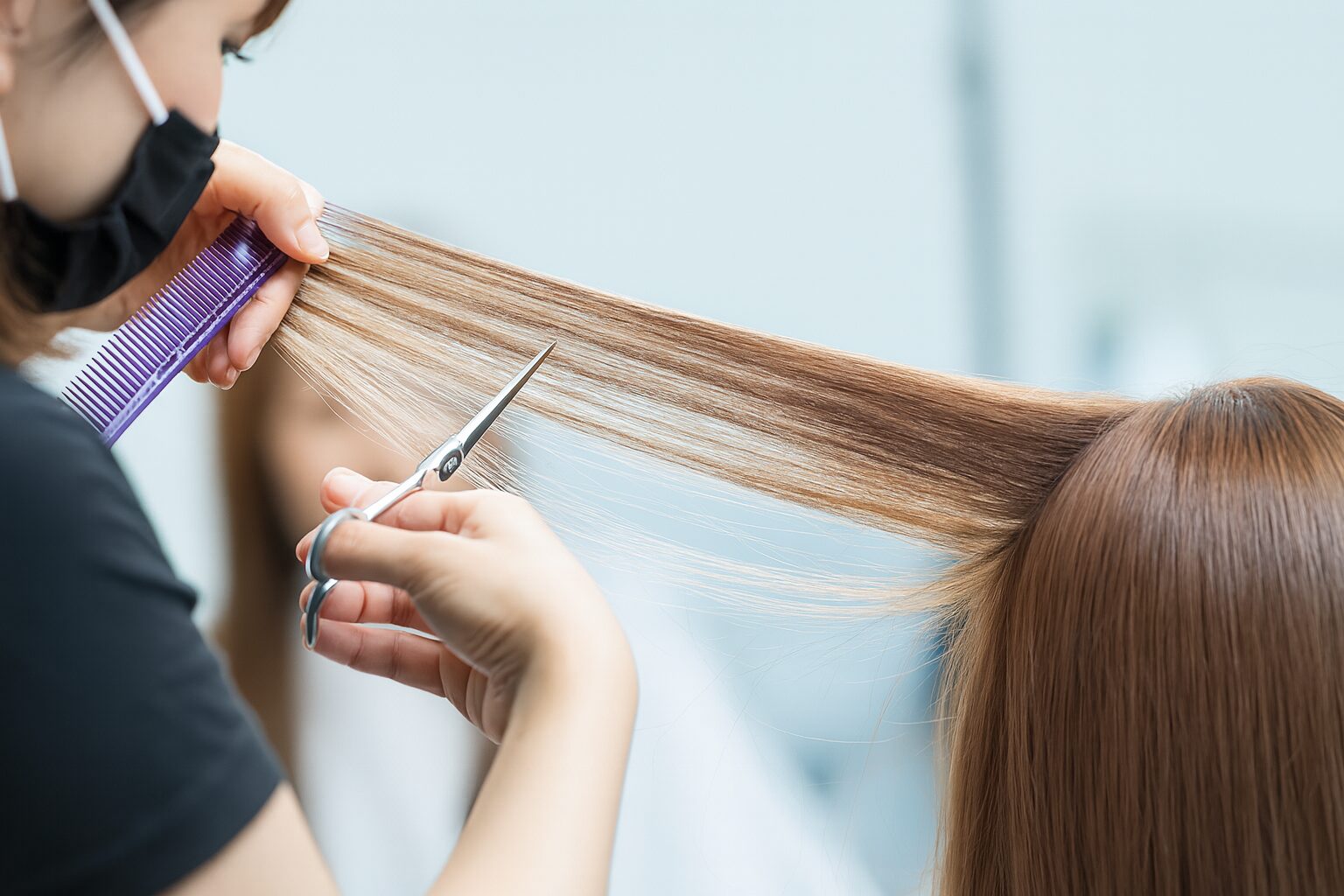 最後に、エクステと地毛を馴染ませるためのカットを行います。