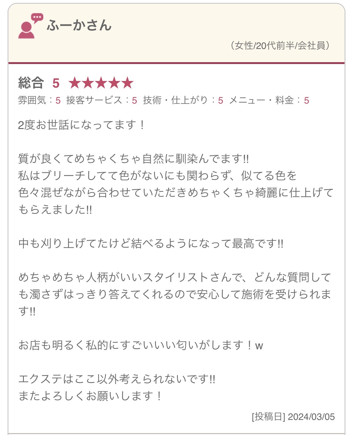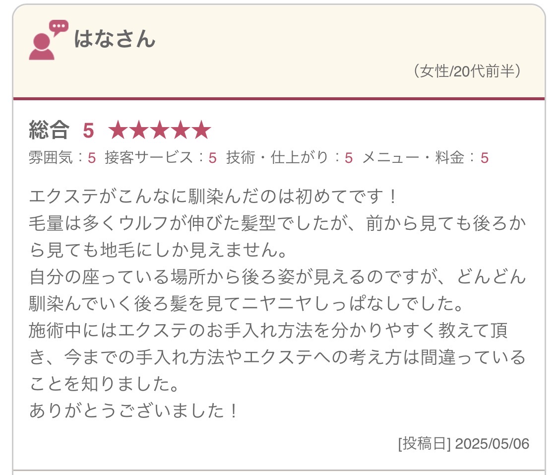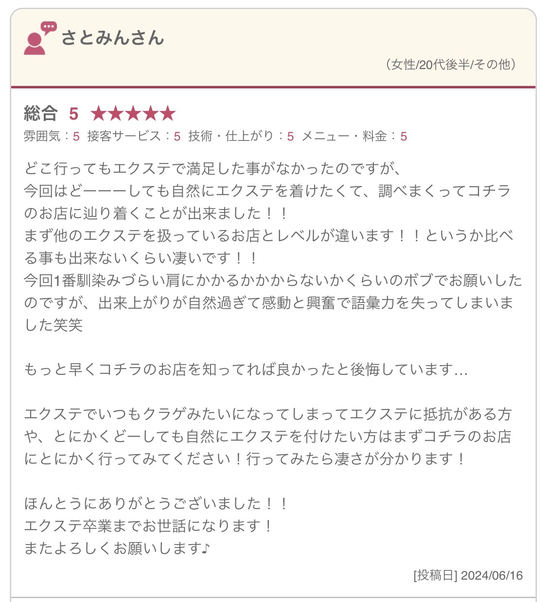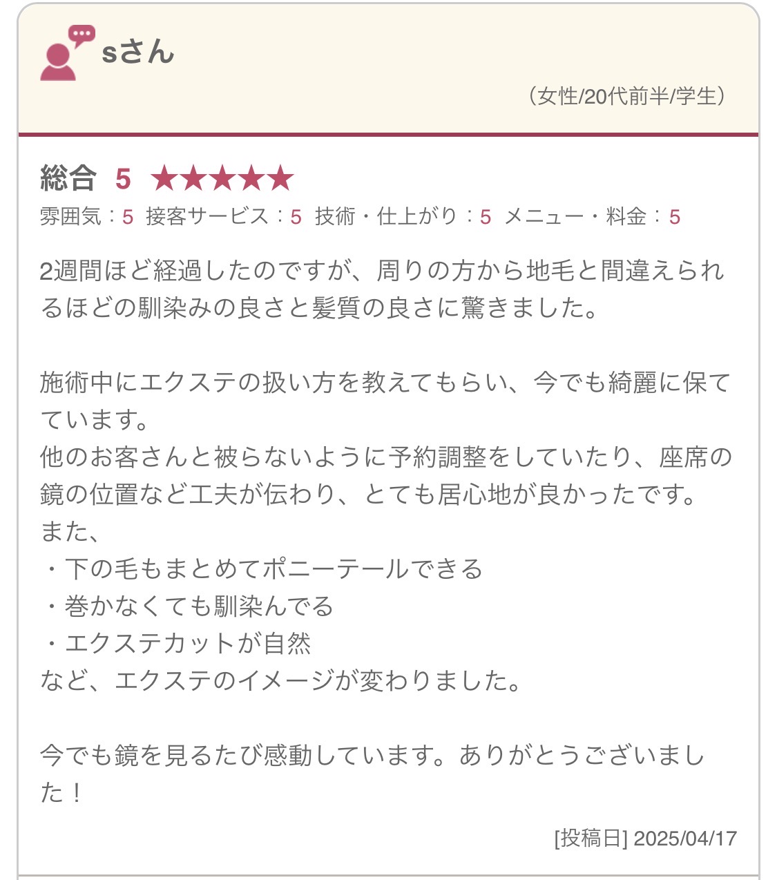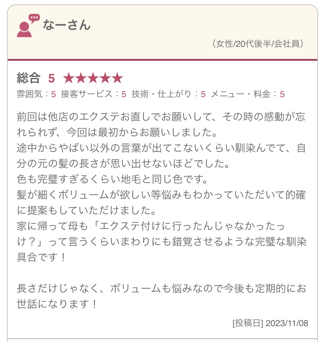だからこそ、地毛とエクステの色が全く違和感なく調和します。