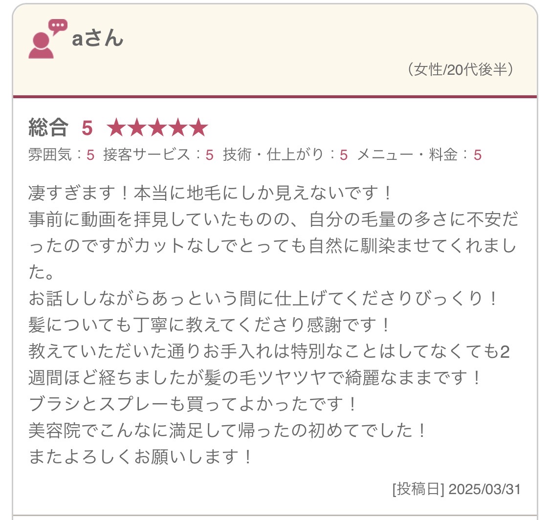 「他店で長さ出しをしたけど馴染んでいない」という方のための救済プランです。