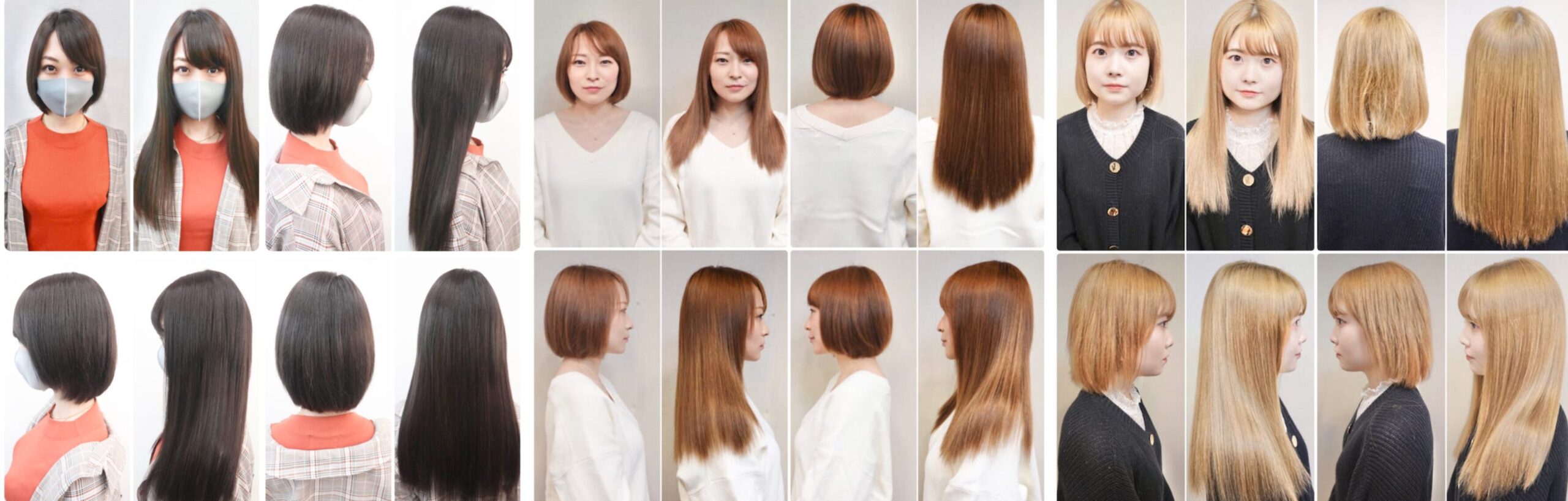 ショートからロング、ボブからロングなどの「長さ出し」はもちろん、ボリュームアップ、インナーカラー、メッシュ、増毛など幅広い技術を習得できます。
